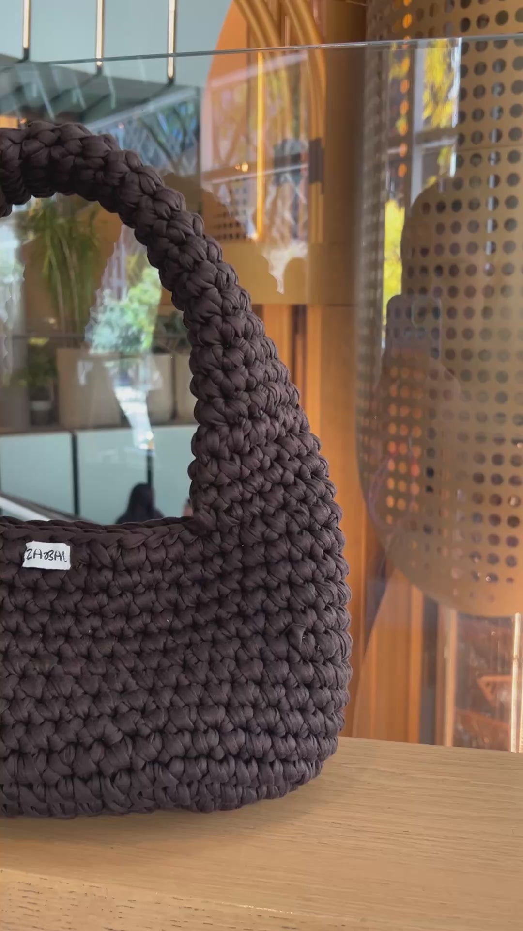 Cada bolso ZABAL está tejido 100% a mano con trapillo a base de algodón y elastano, lo que le da una textura suave y elástica.